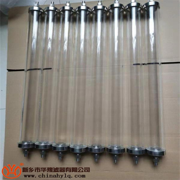 以上兩款傳統型離子交換柱特點:(1)有機玻璃離子交換柱優點:可視樹脂,隨時觀察樹脂失效程度,維護成本較低。缺點:系統壓力稍大或者安裝用力過大時接頭蓋處容易爆裂。(2)全不銹鋼離子交換柱優點:耐用不裂。缺點:樹脂不可視,無法觀察樹脂是否失效,影響水質分析。很長一段時間,電廠用的都是(1)和(2)兩種交換柱。電廠人在維護過程中積累了很多經驗,在行業技術交流過程中,商量著能不能將以上兩者的優點結合起來,讓廠家生產出一款更加有利于現場使用的產品。便有了以下兩款新型離子交換柱。